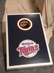 The next set I made (photo at top of page) was a wedding gift, so in addition to fixing the previous issues, I went all out and made some stakes for marking the pitch, a mallet for pounding in said stakes, a laminated instruction sheet, and with the help of a friend, a carrying box. As an added bonus, he was also able to hook me up with that custom laser-cut and laser-etched medallion you see on the front, which turned out pretty neat considering I have about as much artistic ability as I do athletic ability; which is to say, none. When it’s fully-loaded, all that oak guarantees that you’ll wear your arm out hauling the thing long before you even get to playing the game.